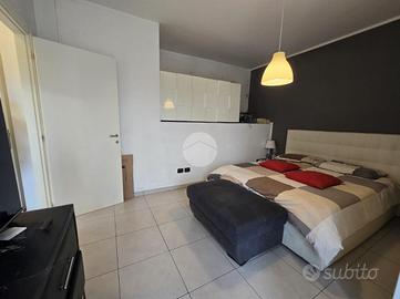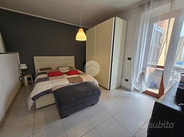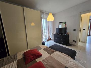 Dal disimpegno si accede alla camera da letto matrimoniale, anch'essa dotata di portafinestra con accesso diretto all'area esterna, creando così una continuità tra gli spazi interni ed esterni.