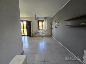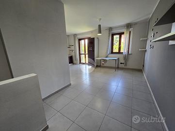 L'ingresso si apre su una zona giorno luminosa e accogliente, con cucina a vista e doppio affaccio grazie a una finestra e a una porta finestra che conduce direttamente al grande giardino/terrazzo di circa 300 mq: uno spazio ideale per chi ama vivere all'aperto, rilassarsi o organizzare momenti conviviali.