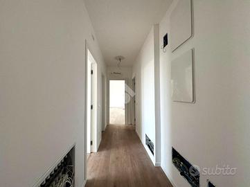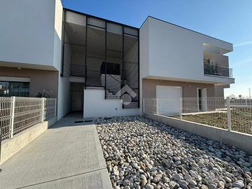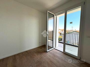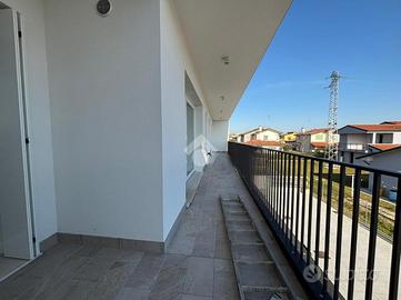Olmi, San Biagio di Callalta : appartamento di nuova costruzione in Classe A4 In elegante palazzina di sole 5 unità abitative, proponiamo appartamento al primo piano di nuova costruzione, progettato con elevati standard costruttivi, comfort abitativo e massima efficienza energetica. L'immobile è composto da due camere da letto, ampio soggiorno con cucina a vista, due bagni, garage, magazzino e doppio posto auto esterno. Le finiture comprendono pavimentazione in gres porcellanato effetto legno su tutta la superficie e porte interne tamburate in legno laminato finitura quarzo (bianco spazzolato) con maniglie standard grigio satinato. È presente portoncino d'ingresso blindato. I serramenti sono realizzati con finestre, porte finestre e alzanti scorrevoli in PVC bianco, dotati di triplo vetrocamera basso emissivo, scuri esterni in legno multistrato e zanzariere. È inoltre prevista la predisposizione per tende oscuranti su finestre e alzanti scorrevoli del soggiorno. L'appartamento dispone di un ampio terrazzo abitabile che si sviluppa lungo tutta la lunghezza dell'immobile, con accesso diretto dal soggiorno e dalle camere, ideale per vivere appieno gli spazi esterni. Dotazioni impiantistiche di ultima generazione: riscaldamento a pavimento, pompa di calore, ventilazione meccanica controllata puntuale, impianto fotovoltaico da 6 kW e predisposizione per climatizzazione. Costruzione in Classe Energetica A4, senza cappotto esterno ma con murature a intercapedine con isolamento interno, strutture esterne in cemento armato e isolamento acustico box-in-box. Pacchetto di copertura ad alte prestazioni, composto da: Pannello isolante in lana di roccia spessore 12 cm Membrana impermeabilizzante bituminosa Massetto spessore 8 cm Strato di ghiaia di copertura spessore 10 cm I garage sono dotati di portoni basculanti motorizzati e coibentati, con finitura esterna bianca o personalizzabile. Consegna prevista: luglio 2025. Soluzione ideale per chi cerca una casa mod