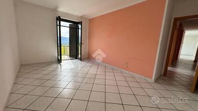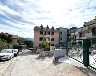 L'abitazione si apre su un luminoso soggiorno con cucina a vista, caratterizzato da un doppio affaccio che conduce ad un ampio balcone privato, dal quale si può godere di una splendida vista panoramica sui Monti Picentini.