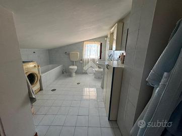 Il bagno, ampio e dotato di vasca, dispone di un punto luce che illumina l'ambiente. Completa la proprietà un terrazzino che offre una vista panoramica sui Monti Picentini e una suggestiva vista mare.