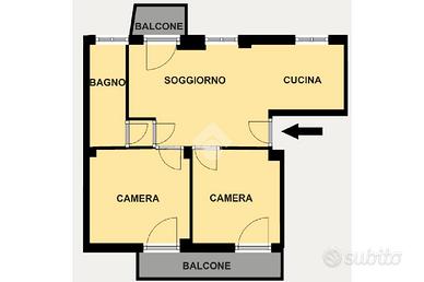 Ingresso dal quale abbiamo accesso ad un'ampia zona living con un balcone rivolto verso la struttura interna, proseguendo ci rivolgiamo verso la cucina a vista a disposizione di penisola, adatta a pranzi e cene in intimità e riservatezza, grazie a un disimpegno entriamo in un un comodo bagno finestrato con vasca, mentre direttamente dalla zona giorno possiamo accedere alla camera da letto singola e alla comoda suite matrimoniale con ampio balcone comunicante tra le due camere