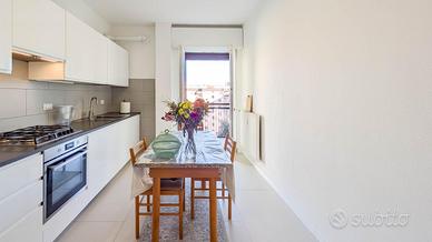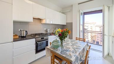 In via Dante Alighieri, al sesto piano e ultimo piano di un edificio residenziale dotato di ascensore, proponiamo in vendita appartamento di 106 mq con spazi ampi e ben distribuiti. L'ingresso conduce a un comodo corridoio che introduce al soggiorno ampio e luminoso e alla cucina abitabile servita da un comodo balcone e da un ripostiglio. La zona notte è composta da due camere da letto ben dimensionate tra cui una con accesso ad un ulteriore balcone , un bagno finestrato e un pratico ripostiglio.