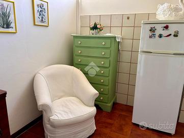 La soluzione, che si presenta in buono stato, ci accoglie con un soggiorno, comunicante con un'ampia cucina, ed un bagno, ristrutturato nell'inverno 2023.
