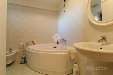 Dal disimpegno arriviamo alla zona notte: una camera da letto matrimoniale, una camera da letto singola ed il bagno finestrato con sanitari in ceramica sospesi, doccia e vasca separate.