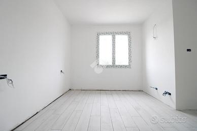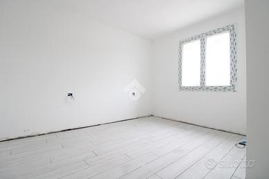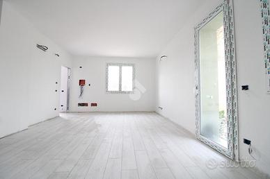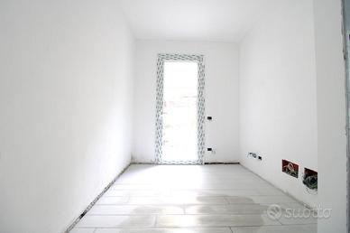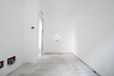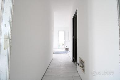 Questa soluzione si compone di ingresso su soggiorno con angolo cottura, disimpegno, due camere da letto e bagno con doccia.