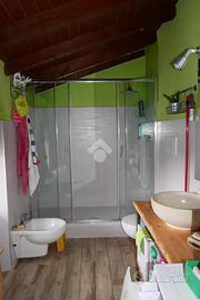 Dal soggiorno si accede alla camera matrimoniale ed al bagno, dotato di sanitari sospesi e di ampio box doccia posizionato sull'intera parete di fondo.