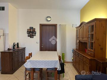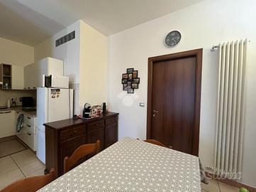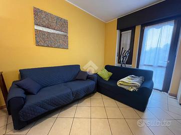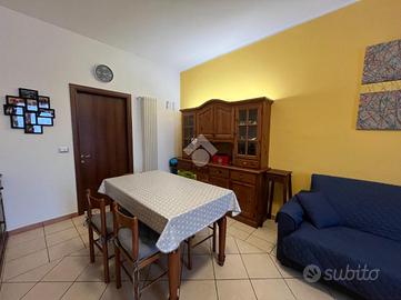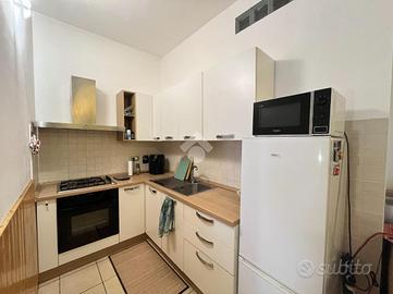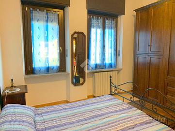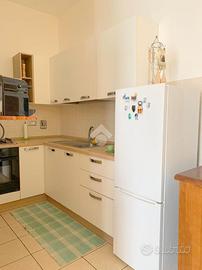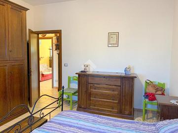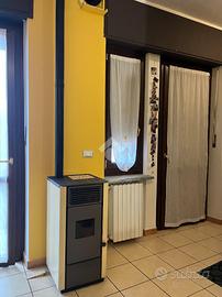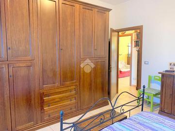 Il soggiorno è living ed è molto luminoso, con stufa a pellet e cucinotto a vista. Tramite il disimpegno, si accede al bagno cieco con doccia, alla camera da letto matrimoniale e alla cameretta.
