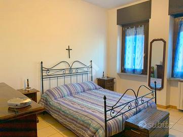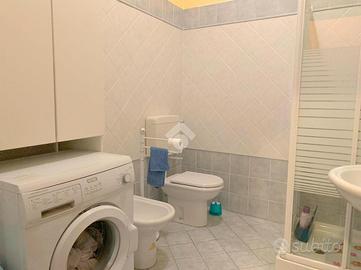 In prossimità della via principale di San Francesco, delle Poste, del Crai, del centro commerciale 'Le Borgate', di ristoranti e bar, appartamento al primo piano totalmente ammobiliato situato in contesto bifamiliare.
