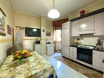 Alla sinistra del soggiorno si trova una cucina ben organizzata, completa di un secondo balcone da cui si può godere di una vista libera verso il Vesuvio.