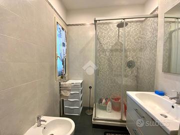 Infine il bagno con box doccia e finestra.