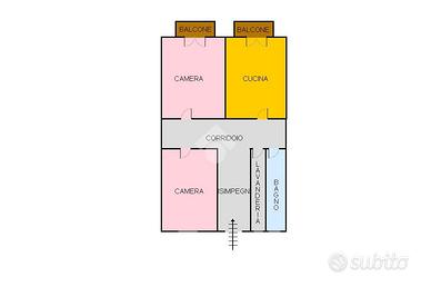 A completare l'abitazione, troviamo un bagno con vasca e finestra. Inoltre, un vano lavanderia separato offre uno spazio dedicato per le attività domestiche, contribuendo a mantenere l'ordine e la praticità all'interno dell'appartamento.