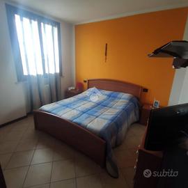 La zona notte dispone di camera matrimoniale, camera singola e servizio con box doccia e attacco per lavatrice.