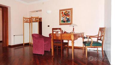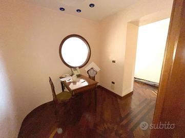 L'abitazione, ideale come studio professionale, si presenta con un elegante ingresso, un soggiorno con affaccio sulla Piazza, tre camere, due bagni ed un ampio terrazzo di circa 50 mq.