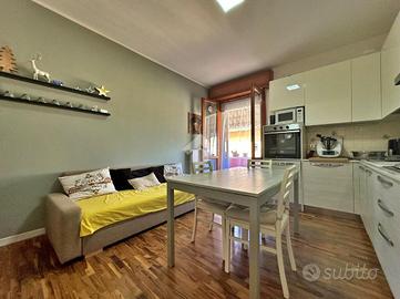 L'appartamento comprende: soggiorno, cucina, due camere da letto, disimpegno, bagno.