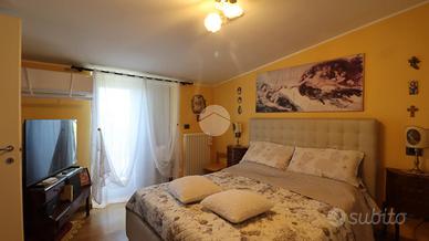 Salendo al piano superiore, la zona notte si compone di una spaziosa camera matrimoniale con accesso a un balcone privato, una cameretta doppia anch'essa servita da balcone, e un secondo bagno finestrato con doccia.