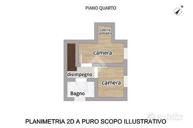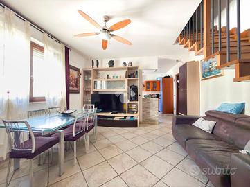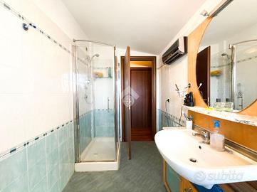 Al primo livello troviamo un ampio soggiorno, cucina abitabile con affaccio sul balcone, antibagno e bagno finestrato con vasca idromassaggio. Una scalinata ci porta al piano superiore che si compone da due camere da letto di cui una dispone di una cabina armadio e un secondo bagno finestrato con box doccia.