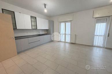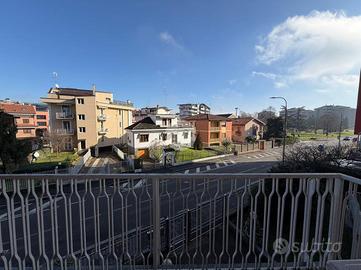 Sulla destra si apre la zona giorno, composta da un luminoso soggiorno con cucina a vista, uno spazio moderno e ben organizzato, valorizzato da una porta finestra che conduce al balcone alla francese. L'affaccio sulla corte interna garantisce un contesto silenzioso e riservato, ideale per momenti di relax.