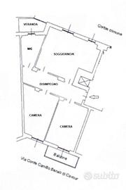 Via Cavour , San Giuliano Milanese (MI) : Adiacente a Via Fratelli Cervi e Via Francesco Baracca, in una zona residenziale ben servita, proponiamo TRILOCALE in stabile civile degli anni '60, dotato di ascensore, servizio di pulizia settimanale e giardino condominiale.