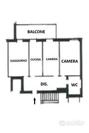 L'appartamento risulta essere così composto: ingresso su ampio disimpegno che conduce frontalmente al luminoso soggiorno, con accesso al balcone che si sviluppa lungo l'intero lato dell'immobile, con piacevole affaccio su via Milano. Adiacente al soggiorno, sulla destra, si trova la cucina abitabile, anch'essa con accesso al medesimo balcone.
