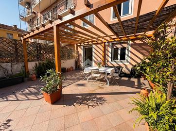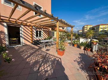 Raro appartamento servito da ascensore, caratterizzato da una splendida terrazza di circa 50 mq, estremamente luminoso e ideale per vivere al meglio gli spazi esterni grazie al comodo gazebo, perfetto per pranzi all'aperto e serate in compagnia. Situato in posizione centrale a San Lorenzo al Mare, a pochi passi dal mare e dalla rinomata pista ciclabile. Nel cuore di San Lorenzo al Mare, a breve distanza dalle spiagge e dalla celebre pista ciclabile della Riviera dei Fiori, proponiamo in vendita un luminoso trilocale con balconi, posto al primo piano di una palazzina dotata di ascensore. L'ingresso si apre su un accogliente soggiorno con angolo cottura, uno spazio funzionale e ben organizzato, con accesso diretto all'ampio terrazzo vivibile, ideale per momenti di relax all'aperto. La zona notte, ben separata, comprende due spaziose camere da letto, pensate per garantire comfort e tranquillità. Completano la proprietà un bagno e un pratico ripostiglio. L'immobile si distingue per la posizione strategica, comoda a tutti i servizi, negozi e al mare, oltre che per le spese condominiali contenute. Soluzione perfetta sia come prima casa, sia come casa vacanze o investimento a reddito. Contattaci per ulteriori informazioni o per organizzare una visita.