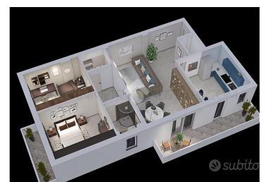 Si compone da: ingresso, cucina già munita di pavimentazione, soggiorno , due camere da letto e servizio oltre ripostiglio.