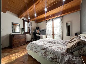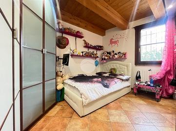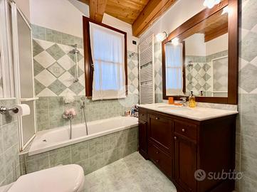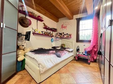 Proseguendo verso la zona notte troviamo la camera matrimoniale padronale ampia con secondo accesso al giardino, bagno finestrato con vasca, con possibilità di mettere il box doccia, e la seconda camera doppia.