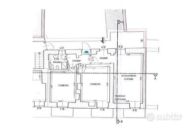 Dall'ingresso/disimpegno, si accede a tutti i locali. La cucina è abitabile, il bagno ha la doccia e le due camere da letto sono di discrete dimensioni.