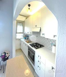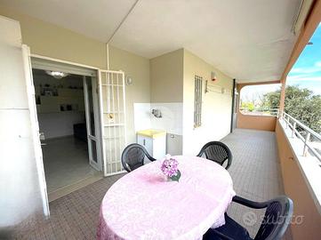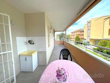 Entrando nell'appartamento troviamo un soggiorno accogliente che affaccia su un comodo balcone a giro in parte verandato ideale per pranzi e cene all'aria aperta, la zona notte è composta da due camere da letto, e un bagno finestrato con box doccia.