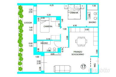 L'appartamento si compone di tre locali, tra cui due camere da letto e due bagni, ideali per garantire privacy e funzionalità.