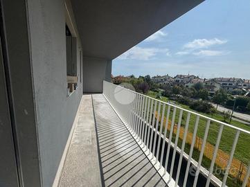 Dalla zona giorno arriviamo su un terrazzo loggiato, perfetto per momenti di relax all'aperto.
