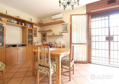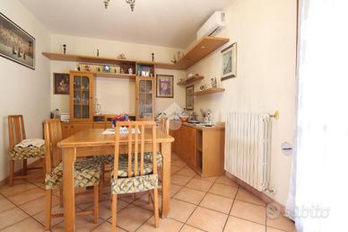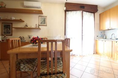 L'immobile è un appartamento sviluppato interamente al piano terra all'interno di una palazzina costruita agli inizi degli anni Duemila. L'edificio si trova nel paese di San Pietro in Casale, in una posizione che permette di raggiungere anche a piedi il centro. Internamente la zona giorno è organizzata in un openspace, con angolo cottura a vista, che si apre su giardino privato di circa 45 mq. La zona notte dispone di due camere, la matrimoniale e la cameretta, quest'ultima con affaccio su piccola corte privata pavimentata di circa 15 mq. Il disimpegno ospita un comodo armadio a muro che nasconde la lavatrice. La proprietà si completa di garage.