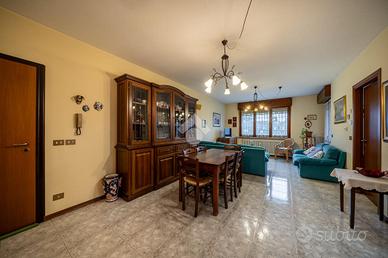 L'immobile è composto da un ampio soggiorno comunicante con la cucina abitabile e la loggia, disimpegno notte con due camere da letto matrimoniali con parquet e due bagni di cui uno finestrato.