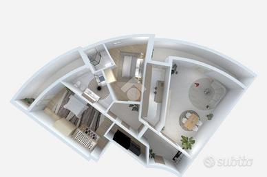 L'appartamento si apre su una luminosa zona giorno con accesso diretto al balcone fronte mare, perfetto per godere della brezza marina e dei tramonti suggestivi.