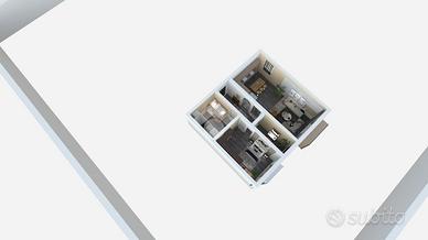 L'immobile è composto da un cucinotto abitabile, comodo ripostiglio, e attraverso un disimpegno accediamo alla zona notte composta da camera da letto, cameretta e bagno finestrato con vasca.