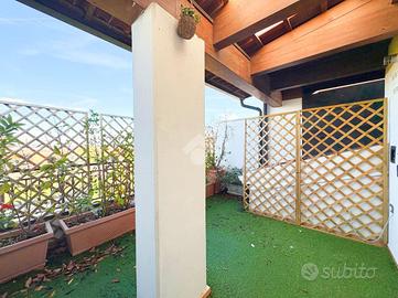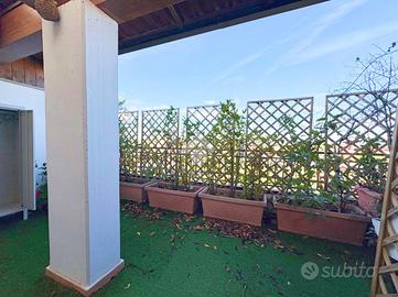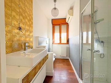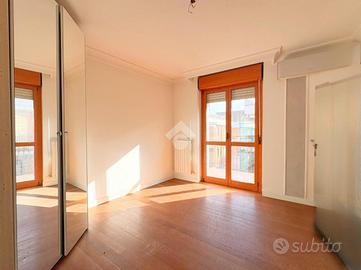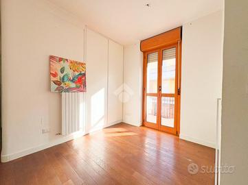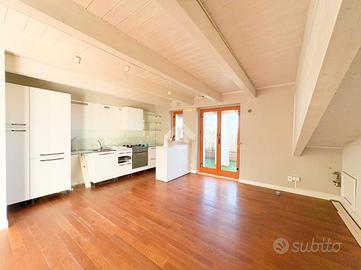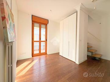 ZONA VIA TORREMAGGIORE: luminoso appartamento situato al secondo piano, disposto su due livelli e con doppia esposizione. L'ingresso conduce direttamente alla zona notte, composta da una cameretta ideale anche come studio, il bagno con finestra e box doccia e una spaziosa camera da letto. Tutti gli ambienti sono dotati di accesso diretto al balcone. Una scala interna conduce alla zona giorno, composto da un ambiente open space con doppia affaccio, uno dei quali sul terrazzo e un bagno di servizio finestrato. A completare la proprietà un box di circa 15 mq e un posto auto scoperto di circa 8 mq. L'appartamento si presenta in buone condizioni con un raffinato pavimento in parquet, infissi di nuova generazione e le travi in legno a vista finitura bianca.