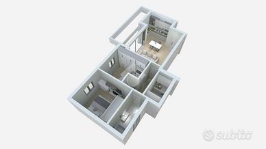 L'unità dispone sia di ingresso condominiale sia di accesso esclusivo e si compone di una luminosa zona giorno open space con cucina e affaccio su un ampio balcone, due camere da letto e un bagno finestrato collegato al secondo balcone. A completamento, sono presenti due posti auto privati, di cui uno coperto.