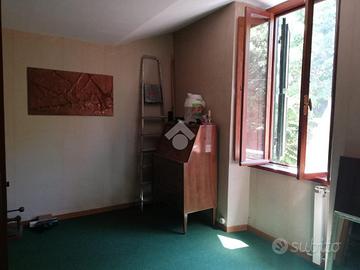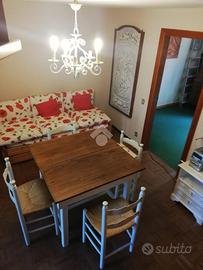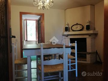 San Vito R: In prossimità del centro, in contesto verdeggiante e tranquillo, si propone appartamento disposto su due livelli: Al piano primo cucinotto, saloncino con camino, camera, bagno, al piano secondo mansarda camera da letto e ampio e comodo bagno con vasca. L'appartamento in buono stato abitativo si presta sia come prima che seconda casa. Assolato panoramico a pochi passi dalla fermata cotral. Senza spese condominiali.