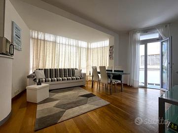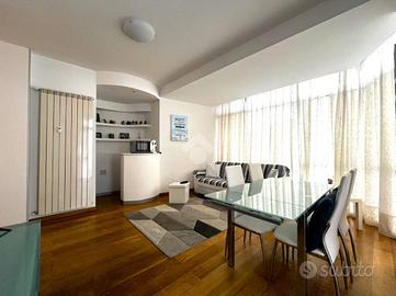In contesto a circa 1 km dal centro, in una zona tranquilla e silenziosa, proponiamo in vendita un alloggio ristrutturato e arredato con gusto, pronto per essere abitato sin da subito. L'ingresso conduce a un luminoso soggiorno impreziosito da ampie vetrate, che donano grande respiro agli ambienti e permettono l'accesso a un balcone con parziale vista mare.