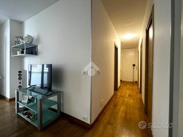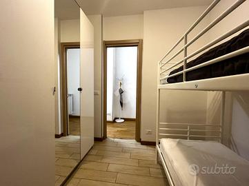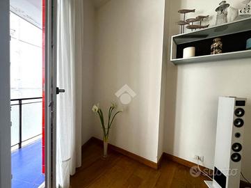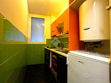 Il cucinotto è separato, ben attrezzato ed arredato su misura, mentre la zona notte comprende una camera matrimoniale con accesso diretto al balcone ed una cameretta. Infine il bagno è finestrato e dotato di doccia. Gli ambienti risultano ben distribuiti e funzionali, ideali per garantire comfort e privacy.