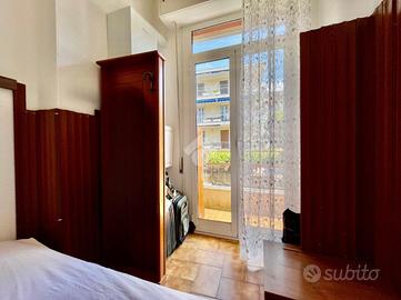 L'alloggio si trova al secondo piano di una piccola palazzina. L'assenza dell'ascensore è ben compensata dalla posizione favorevole dell'immobile: in pochi minuti a piedi si raggiungono tutti i principali servizi, i negozi, le fermate dei mezzi pubblici e il lungomare. La casa si compone di un ingresso, soggiorno con angolo cottura e accesso al balcone, camera matrimoniale, cameretta e bagno. La doppia esposizione garantisce una buona luminosità durante tutta la giornata e, da una delle finestre, si può godere di un gradevole scorcio di mare.
