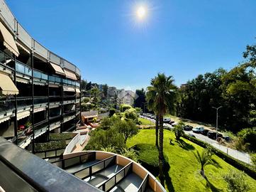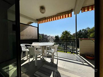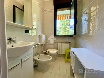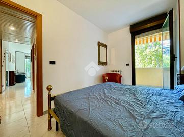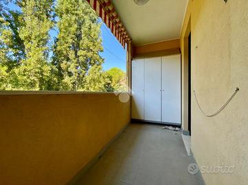 L'alloggio si trova al terzo piano con ascensore di un elegante complesso residenziale dotato di ampio parco, perfetto per chi ama vivere in un contesto curato e immerso nella natura. Varcando la soglia ci accoglie un ingresso che conduce al luminoso soggiorno con angolo cottura, cuore della casa, dal quale si accede a un terrazzo vivibile con splendida vista aperta sul parco, ideale per momenti di relax all'aperto o per cene estive in compagnia. La zona notte è composta da due camere da letto che si affacciano entrambe su un balcone, mentre il bagno, finestrato e dotato di doccia, completa con praticità e comfort gli spazi interni.