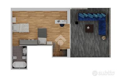 * Soggiorno con cucina a vista e accesso al terrazzo