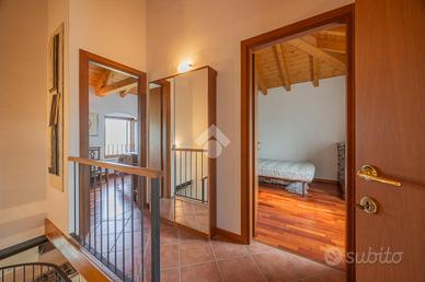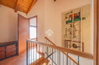 Appartamento duplex con vista lago a San Giorgio Ingannapoltron Nel cuore di San Giorgio Ingannapoltron, uno dei borghi più suggestivi della Valpolicella, proponiamo in vendita appartamento duplex inserito in un tranquillo contesto di sole quattro unità abitative, con basse spese condominiali. L'abitazione si sviluppa su due livelli. Al piano primo si apre una luminosa zona giorno con cucina a vista, caratterizzata da travi in legno e pavimenti in cotto, dove le finestre incorniciano una splendida vista sul Lago di Garda e sulle colline della Valpolicella. Una scenografica scala a vista conduce al piano superiore, dedicato alla zona notte, composta da due camere da letto e bagno finestrato con doccia. Gli ambienti mansardati, le travi a vista e i dettagli caldi del legno donano alla casa un'atmosfera accogliente e autentica. Completano la proprietà una cantina al piano interrato e tre posti auto. Soluzione ideale per chi cerca una casa dal sapore caratteristico, in posizione panoramica e riservata, perfetta sia come abitazione principale sia come rifugio nel cuore della Valpolicella con vista lago.