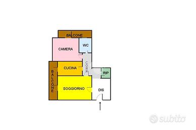 La proprietà si compone di tre vani con doppia esposizione, offrendo luminosità e ventilazione naturale.