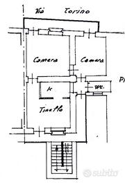 L'ingresso è nell'ampio soggiorno con angolo cottura ed adiacente ad esso vi è un disimpegno che accompagna alle due camere da letto, entrambe con l'affaccio sul balcone. Il bagno è finestrato con vasca.