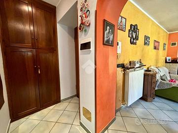 L'ingresso è al secondo piano nel disimpegno; adiacente ad esso vi è la camera matrimoniale ed il bagno con il balcone ed il box doccia.