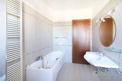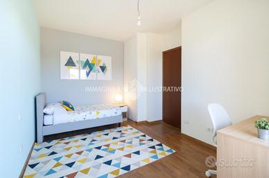 Un comodo disimpegno conduce alla zona notte, composta da una camera matrimoniale e una cameretta, entrambe con accesso al balcone abitabile, oltre a un bagno finestrato dotato di box doccia e vasca idromassaggio.
