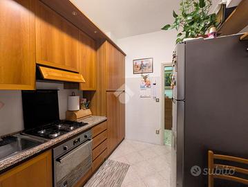 L'ingresso conduce alla zona giorno composta da un soggiorno con sfogo esterno e da un cucinotto separato, funzionale e abbastanza ampio da ospitare un tavolo da pranzo.