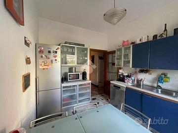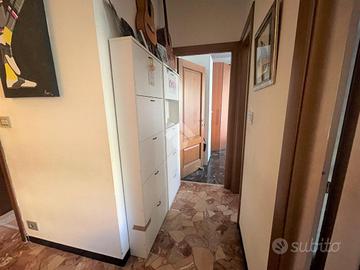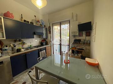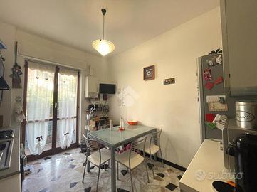 Manesseno, siamo precisamente in via Ernesto Cassissa, proponiamo in vendita appartamento di 5 vani posto al primo piano di un condominio in buone condizioni dotato di ascensore. L'immobile, in buone condizioni interne, è composto da ingresso, cucina, due camere, bagno e dispensa. Come pertinenze abbiamo due balconi, cantina e posto auto condominiale assegnato. La casa dispone di pavimentazione tipica alla genovese, gli infissi interni sono in legno vetro semplice, mentre esternamente abbiamo taparelle automatizzate in pvc. E' presente impianto di antifurto ed il riscaldamento è centralizzato. L'appartamento risulta comodo a mezzi e servizi e si trova nelle immediate vicinanze del Parco di Villa Serra.